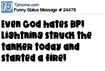 X is Even God hates BP! Lightning struck the tanker today and started a fire!
