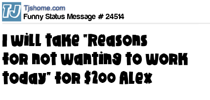 - # 19422 would like "Reasons I Don't Want To Be At Work Today" for $200, Alex.