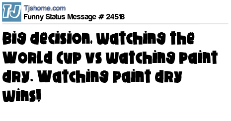 X is Big decision, watching the World Cup vs watching paint dry. Watching paint dry wins!