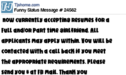- # 8933 now currently accepting resumes for a Full and/or Part time girlfriend. All applicants may apply within. You will be contacted with a call back if you meet the appropriate requirements. Thank you