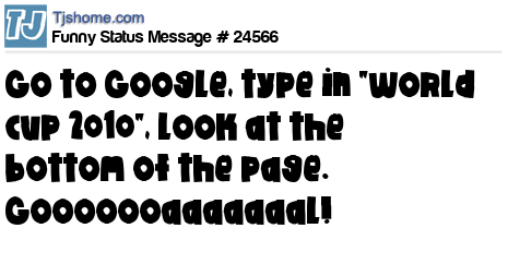 X says Go to Google, type in "world cup 2010", look at the bottom of the page. Gooooooaaaaaaal!