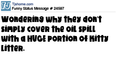 X is wondering why they don't simply cover the oil spill with a HUGE portion of kitty litter.