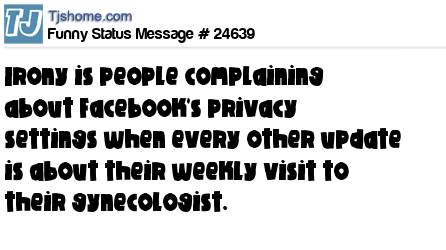 X Irony is people complaining about Facebook's privacy settings when every other update is about their weekly visit to their gynecologist.