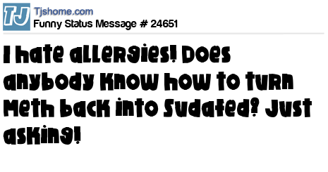 X is I hate allergies! Does anybody know how to turn Meth back into Sudafed? Just asking!