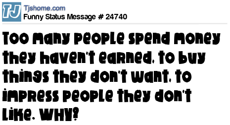 X Too many people spend money they haven't earned, to buy things they don't want, to impress people they don't like. WHY?
