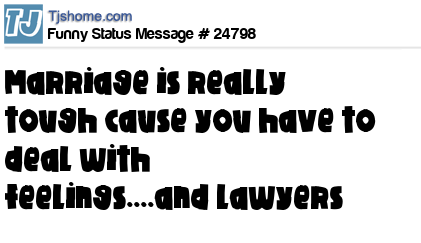 X says marriage is really tough cause you have to deal with feelings....and lawyers