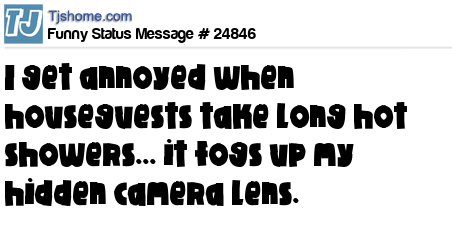 X I get annoyed when houseguests take long hot showers... it fogs up my hidden camera lens.