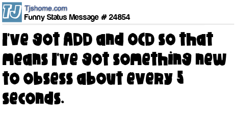 X says I've got ADD and OCD so that means I've got something new to obsess about every 5 seconds.
