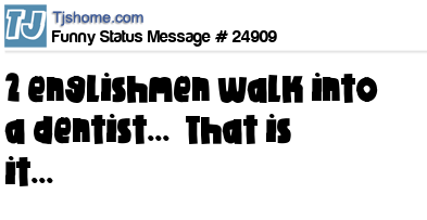 - # 186454 Dentist: I'm going to give you some helium gas. Me: Will that stop me from feeling any pain? Dentist: No...... But when you screem, it will be hilarious.