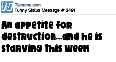 - # 39077 Earlier today I got a call from a charity asking me to donate some of my clothes to the starving people throughout the world.I told them to kiss my a$$. Anybody who fits into my clothes isn't starving..lol