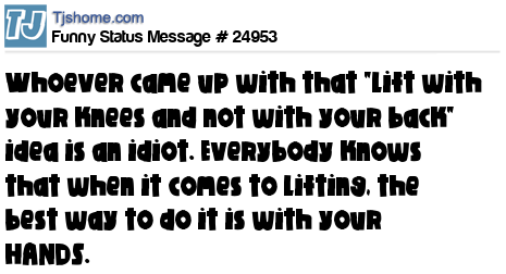X Whoever came up with that "lift with your knees and not with your back" idea is an idiot. Everybody knows that when it comes to lifting, the best way to do it is with your HANDS.