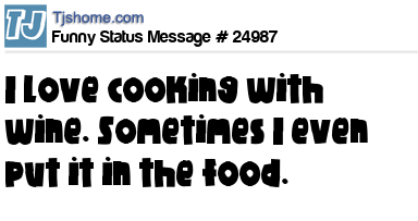 - # 86981 "I love to cook with wine, sometimes I even put it in the food."