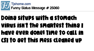 X is doing situps with a stomach virus isn't the smartest thing I have ever done! Time to call in CSI to get this mess cleaned up