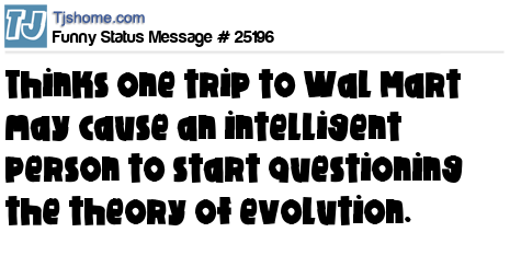 X thinks one trip to Wal Mart may cause an intelligent person to start questioning the theory of evolution.