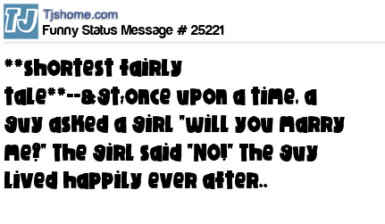 X **shortest fairly tale**-->once upon a time, a guy asked a girl "will you marry me?" The girl said "NO!" The guy lived happily ever after..