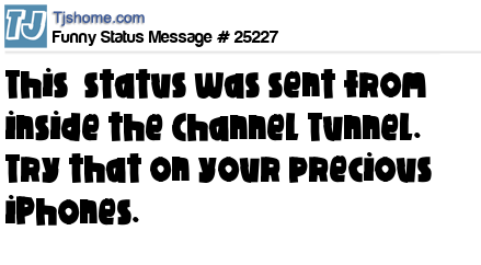 X This status was sent from inside the Channel Tunnel. Try that on your precious iPhones.