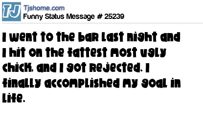 X is I went to the bar last night and I hit on the fattest most ugly chick, and I got rejected. I finally accomplished my goal in life.