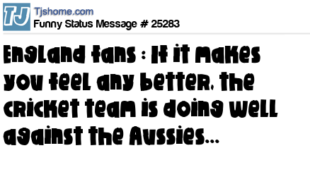X is England fans : If it makes you feel any better, the cricket team is doing well against the Aussies...