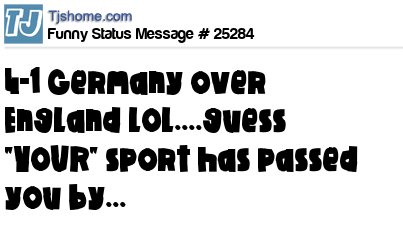 X is 4-1 Germany over England LOL....guess "YOUR" sport has passed you by...