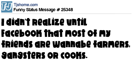 X I didn't realize until Facebook that most of my friends are wannabe farmers, gangsters or cooks.
