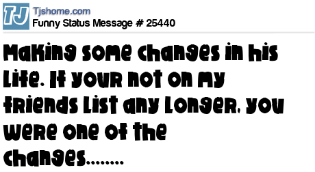 X is making some changes in his life. If your not on my friends list any longer, you were one of the changes........