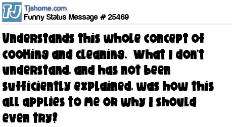 X understands this whole concept of cooking and cleaning. What I don't understand, and has not been sufficiently explained, was how this all applies to me or why I should even try?
