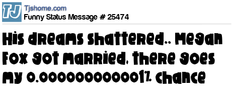 X has his dreams shattered.. Megan Fox got married, there goes my 0.000000000001% chance