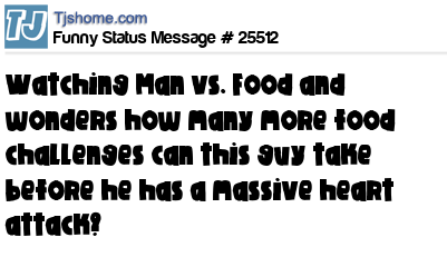 X is watching Man vs. Food and wonders how many more food challenges can this guy take before he has a massive heart attack?