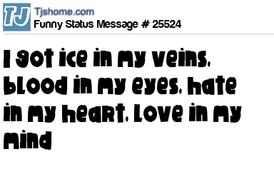 - # 25520 Quotations i got ice in my veins, blood in my eyes, hate in my heart, love in my mind