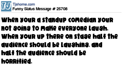 X When your a standup comedian your not going to make everyone laugh. When your up there on stage half the audience should be laughing, and half the audience should be horrified.