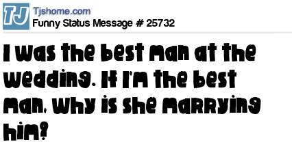 X is I was the best man at the wedding. If I'm the best man, why is she marrying him?
