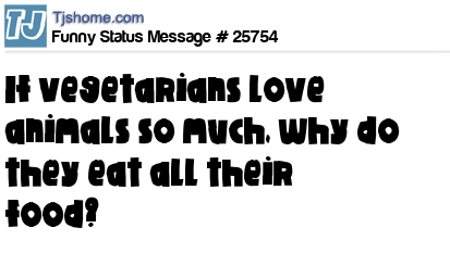 - # 38292 If vegetarians love animals so much, why do they eat all their food?