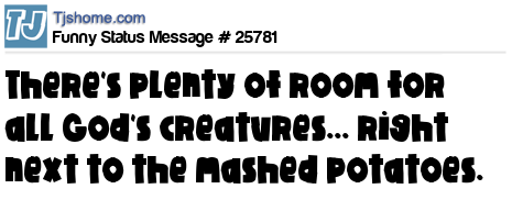 - # 18641 In this world there is plenty of Room for all of gods creatures.....Right next to the Mashed Potatoes and Gravy!!!