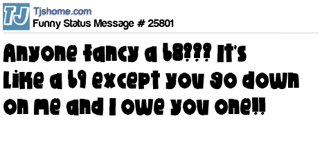X Anyone fancy a 68??? It's like a 69 except you go down on me and I owe you one!!