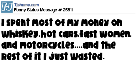 X says I spent most of my money on whiskey.hot cars,fast women, and motorcycles....and the rest of it I just wasted.