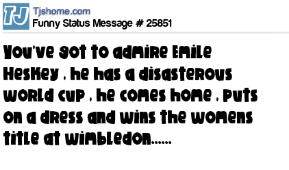 X You`ve got to admire Emile Heskey , he has a disasterous world cup , he comes home , puts on a dress and wins the womens title at wimbledon......
