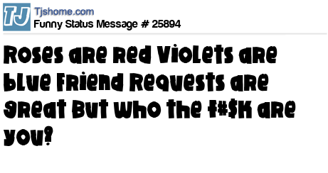 X says Roses are red Violets are blue Friend Requests are great But who the f#$k are you?