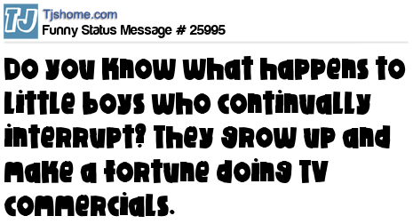 X is Do you know what happens to little boys who continually interrupt? They grow up and make a fortune doing TV commercials.