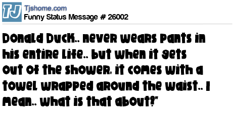 - # 154417 Did you ever notice that Donald Duck never wore pants but always had a towel wrapped around his waist when he came out of the shower?