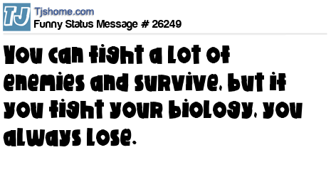 X You can fight a lot of enemies and survive, but if you fight your biology, you always lose.