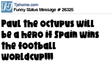 - # 26447 The octopus PAUL has predicted it correct yet again. Spain are the Champions. I need to meet this PAUL and ask him to select which girl should I Propose to. It's time I settle for one girl, having 3 girlfriends Sucks bigtime!!