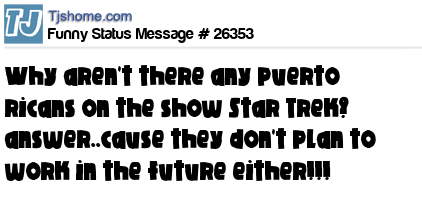 X is why aren't there any puerto ricans on the show Star Trek? answer..cause they don't plan to work in the future either!!!
