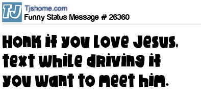 - # 38705 Honk if you love God, text while driving if you want to meet him...