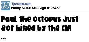 - # 26447 The octopus PAUL has predicted it correct yet again. Spain are the Champions. I need to meet this PAUL and ask him to select which girl should I Propose to. It's time I settle for one girl, having 3 girlfriends Sucks bigtime!!