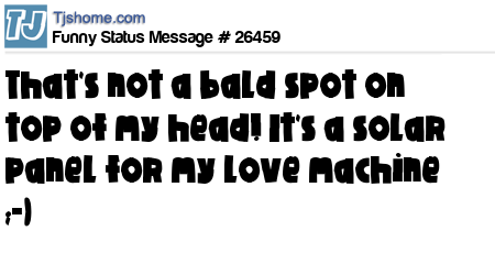 X says That's not a bald spot on top of my head! It's a solar panel for my love machine ;-)