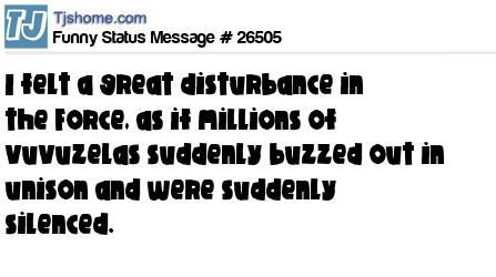 X I felt a great disturbance in the Force, as if millions of vuvuzelas suddenly buzzed out in unison and were suddenly silenced.