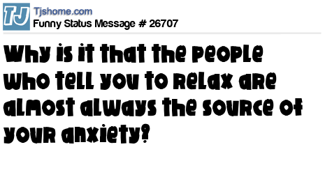 X  Why is it that the people who tell you to relax are almost always the source of your anxiety?
