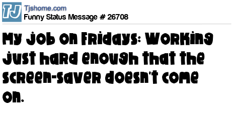 X My job on Fridays: Working just hard enough that the screen-saver doesn't come on.