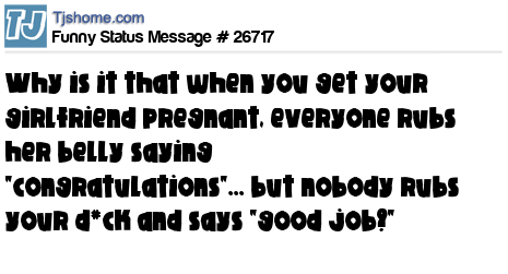 - # 53029 t pisses you off when your wife gets pregnant,everyone rubs her belly & says "congrats!" but nobody rubs your d*ck & says "Good Job!"