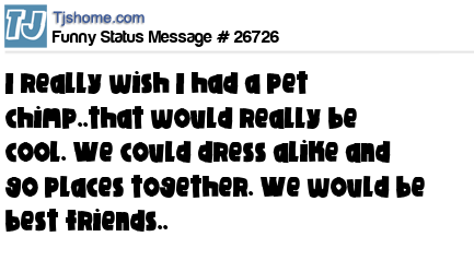 X says I really wish I had a pet chimp..that would really be cool. We could dress alike and go places together. We would be best friends..